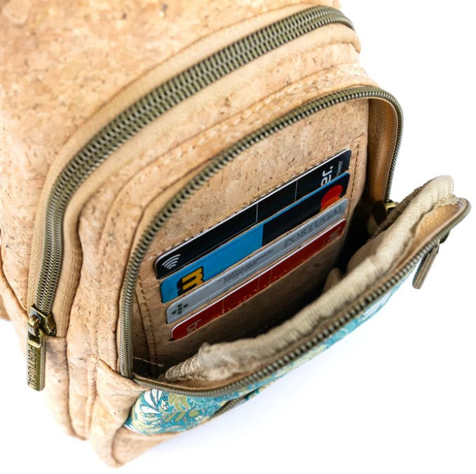 Brook versatile Cork Messenger Bag features a zipped dual-compartments, 4 interior card slots and outside zipped pocket. Get hands free but keep your values close to your chest!