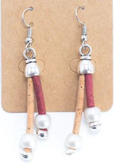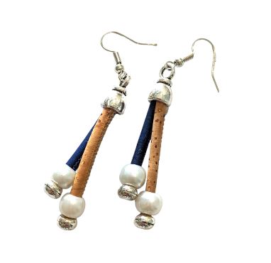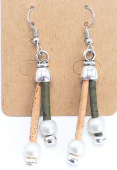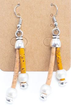How stunning are these Dangler Cork Earrings featuring 2 cork strands with pearl and silver embellishment. Will dress up any outfit. Portuguese design. Comes in a black craft gift box. Drop measures 6.5cm long. Surgical steel earring hooks.